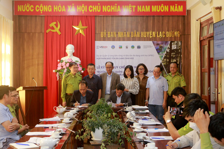 Sáng 20/5, UBND huyện Lạc Dương phối hợp với Vườn Quốc gia (VQG) Bidoup - Núi Bà và Hợp phần Bảo tồn đa dạng sinh học, Dự án Quản lý rừng bền vững và Bảo tồn đa dạng sinh học (VFBC) tổ chức lễ ký kết quy chế phối hợp thực hiện truyền thông quản lý bảo vệ rừng, bảo tồn động vật hoang dã và đa dạng sinh học.